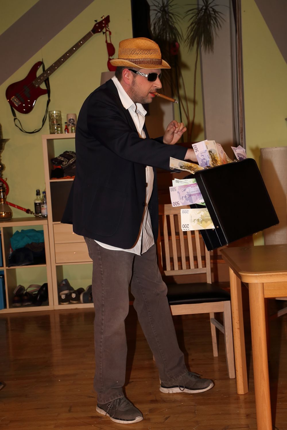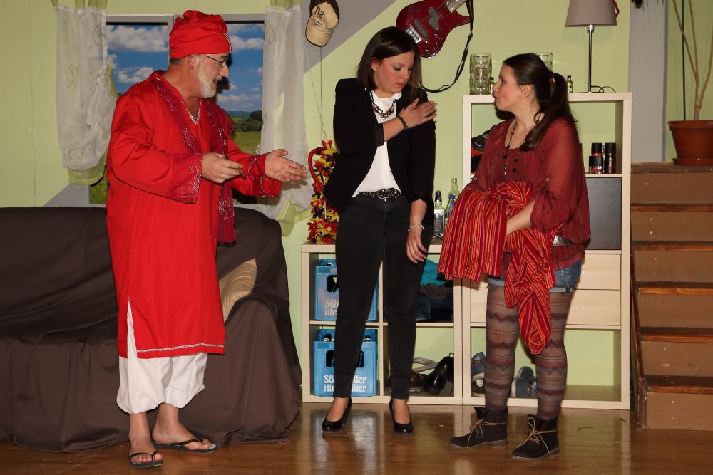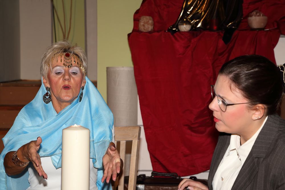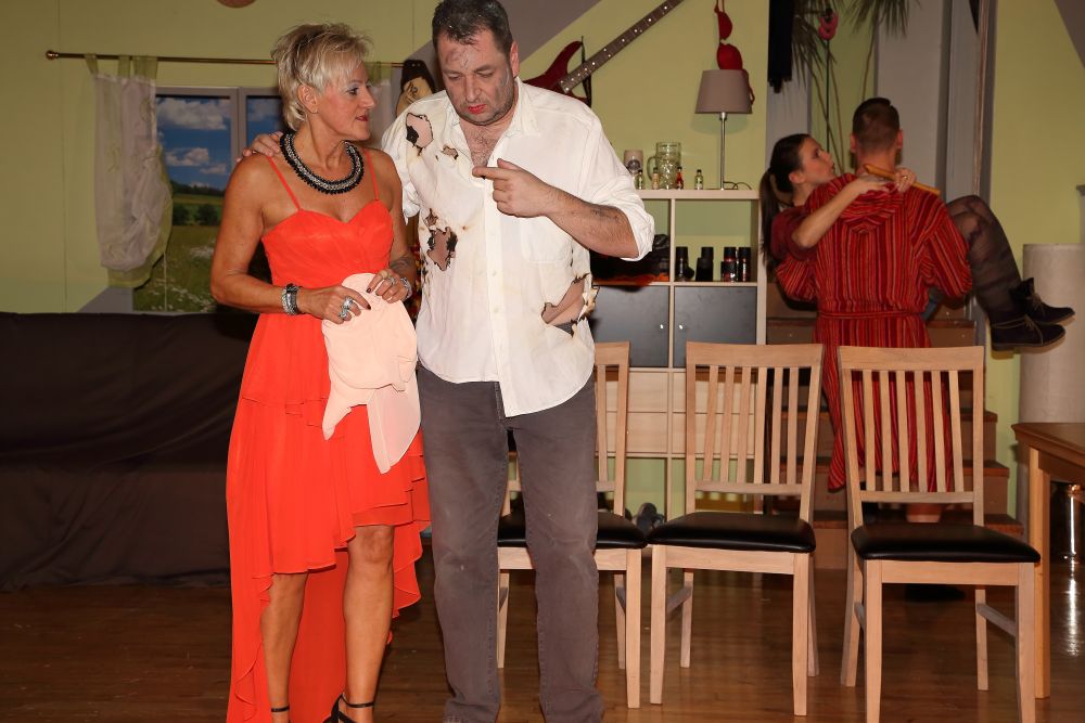 Unterstützt wird er dabei von Gerda (Tanja Knoblauch), seiner Nachbarin. Diese musstraut den Schwüren von Linda, zumal Hugos Sohn Fritz (Michael Nagel) in der Ehe nichts zu melden hat. Er ist Linda und deren mit im Haus lebenden Schwester Wanda (Elisabeth Nagel) nicht gewachsen.